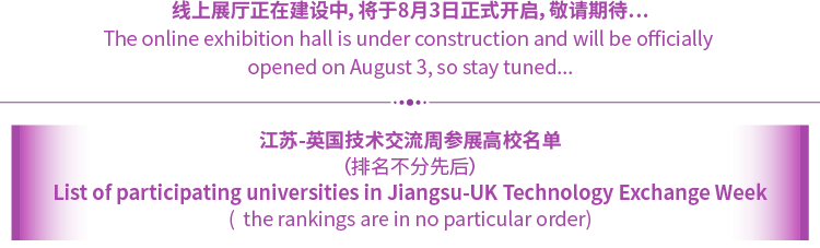 An online exhibition hall for international technology of Jiangsu-UK universities will be built to showcase the key research fields and technical achievements of more than 50 Jiangsu-UK high-level universities, and provide an online communication and interactive platform. It aims to meet the needs of the feeding industry, promote the transfer and transformation of scientific research results from Chinese and British universities, and help the high-quality development of regional industries.