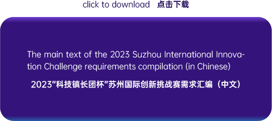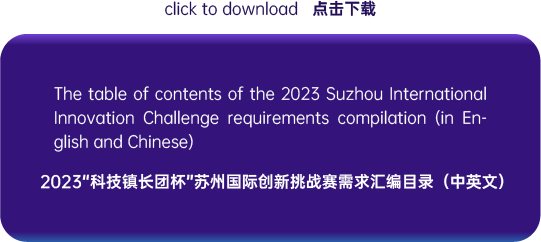 Please find the table of contents (in English and Chinese) and the main text (in Chinese) of the 2023 Suzhou International Innovation Challenge requirements compilation in the attachment below. Please feel free to contact us if you have any requests for translation or further matchmaking.